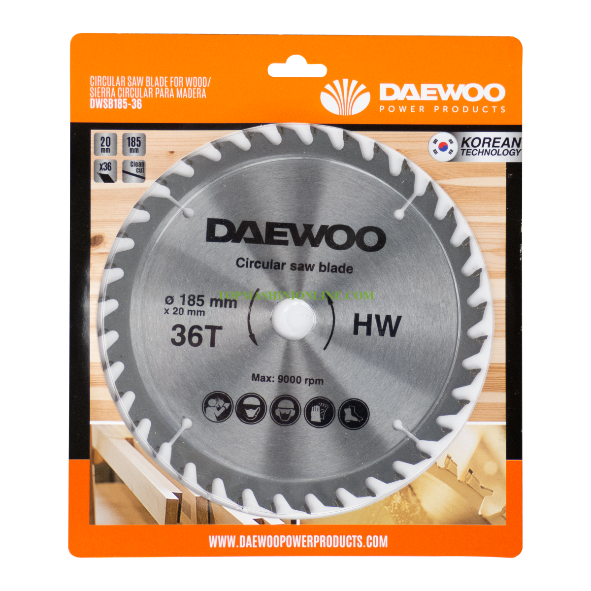 Марка: DaewooМодел: DWSB185-36Външен диаметър: Ø 185 ммВътрешен диаметър: 20 ммБрой зъби: 36Приложение: за дърво