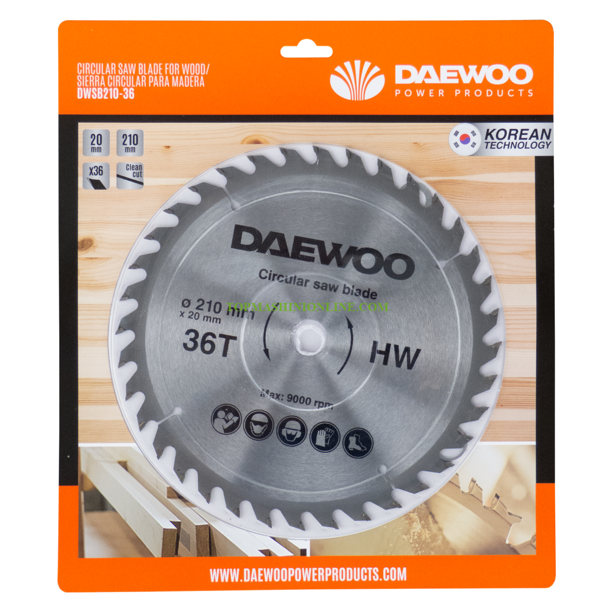Марка: DaewooМодел: DWSB210-36Външен диаметър: Ø 210 ммВътрешен диаметър: 20 ммБрой зъби: 36Приложение: за дърво