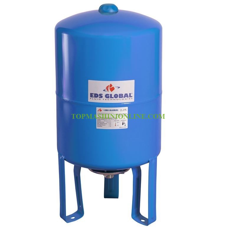 Разширителен хидрофорен съд EDS Global EDS-50VL-PW 50 литра за вертикален монтаж, е със сменяема мембрана, мембраната е изработена от EPDM и е подходяща за санитарни нужди, максимално налягане 10 бара, фабрично налягане 3 бара, присъединителен размер 1 цол.  двойно боядисан с полиуретанова боя и епоксидно покритие, дебелина на материала 1.2 мм, поцинкован фланец, стойка и крака от метал, без ръждясване по заварките, вертикален монтаж, цвят син RAL 5015, опакован в здрав цветен кашон, размери 722 х 350 Ø мм, произход EDS Global, Турция.