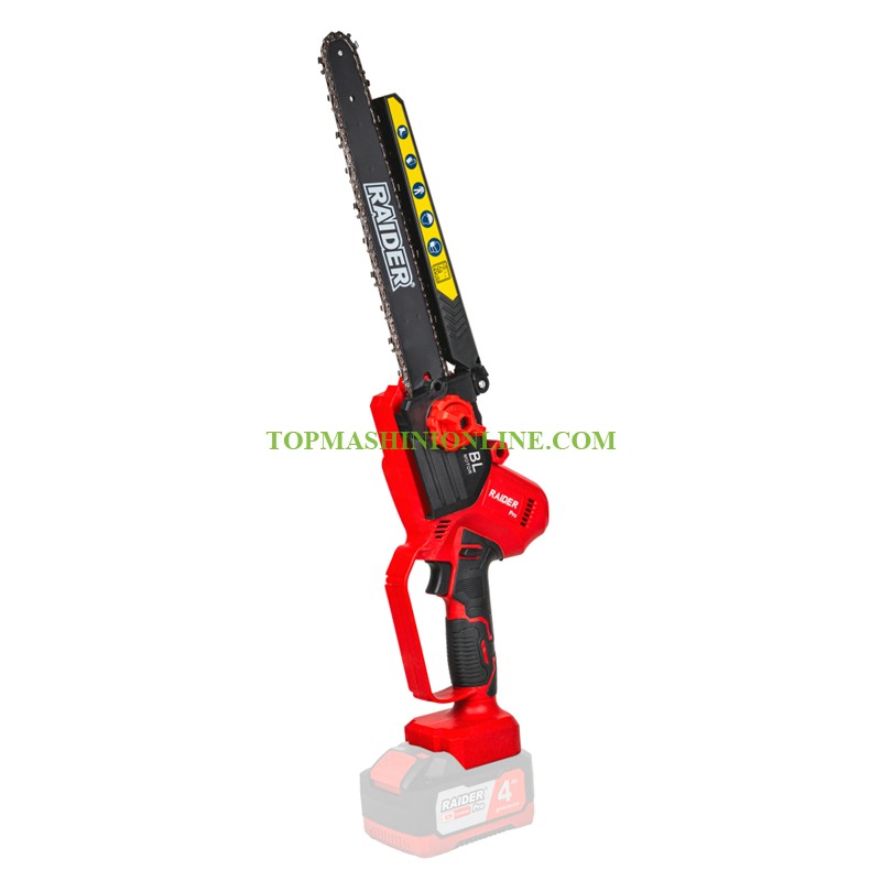 Акумулаторен верижен трион Raider RDP-RBCS20 Solo 20 V е оборудван с водеща шина с препоръчителна дължина 254 мм (10"), в комбинация с фина верига със стъпка 1/4", дебелина на водещото звено .043" (1.1 мм) и 57 водещи звена. Тази конфигурация осигурява прецизен разрез, по-добър контрол и по-ниско ниво на вибрации, особено при работа с по-фини и детайлни материали. Проектиран е за прецизно и контролирано рязане на дървесина, клони и строителни материали от дърво. Машината е част от семейството на R20, което позволява използване на една и съща 20 V батерия с широка гама електроинструменти, осигурявайки максимална гъвкавост и оптимизиране на разходите. Резачката работи с напрежение 20 V DC и е оборудвана с безчетков електродвигател, който осигурява по-висока ефективност, по-ниско енергопотребление и значително по-дълъг експлоатационен живот. Максималните обороти на празен ход достигат 5400 min⁻¹, което гарантира бързо стартиране и стабилна работа при различни натоварвания. Скоростта на веригата при работа без натоварване достига 5.0 m/s, което позволява плавно и ефективно рязане с минимално усилие от страна на оператора.