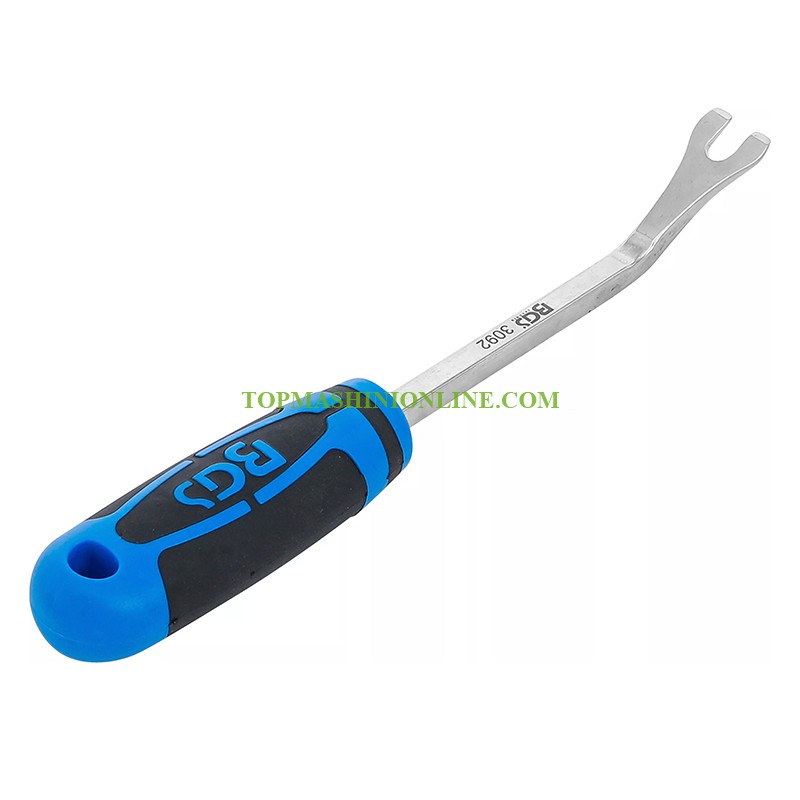 Специализиран инструмент за премахване на декоративни лайстни от каросерии на автомобили BGS technic 3092 е изработен от хром-ванадиева стомана с удобна двукомпонентна дръжка. Отворът на инструмента е с дължина 13 мм и широчина 7.5 мм, а общата дължина на инструмента е 245 мм.