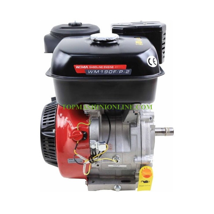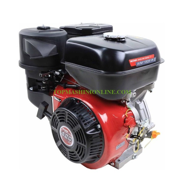 Бензинов двигател с вал на шпонка 25.4 мм Weima WM190F/P-2 е с 4 - тактов, бензинов, едноцилиндров с въздушно охлаждане двигател с мощност 16 конски сили при 3600 об/мин и обем 420 куб.см, резервоар 6.5 литра, дължина на вала 72 мм, разход 0,395 литра на kW на час. произход Китай.