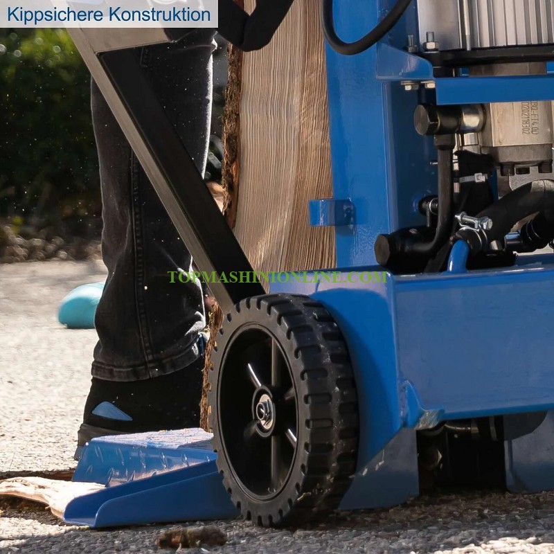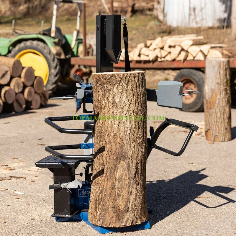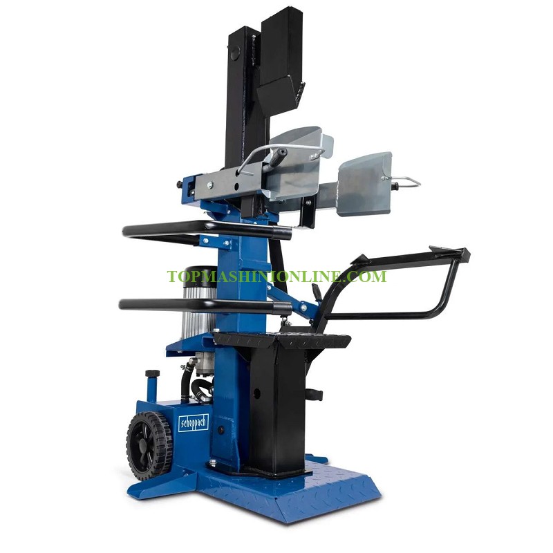 Вертикална трифазна цепачка за дърва 10 тона Compact 10tс мощния си 3500 W двигател и сила на цепене от 10 тона, цепи трупи с дължина до 1070 мм и диаметър от 80 до 380 мм. Дори суха твърда дървесина може да се цепи без усилие. За да предпази гърба ви, машината е оборудвана с повдигач на трупи, който изправя тежките трупи, позволявайки лесното им поставяне върху ниската основна плоча. Големият клин за цепене цепи без усилие както твърда, така и мека дървесина. Благодарение на системата за цепене Vario, различните размери на трупите не са проблем. Машината за цепене на дърва Scheppach изисква 400-волтова електрическа връзка за работа, което я прави особено мощна. При работа с тежко оборудване, максималната безопасност на потребителя е от първостепенно значение: цепачката е изработена от устойчива на усукване стоманена конструкция с прахово покритие и е оборудвана със скоба за трупи и задържащ механизъм. Машината може да се управлява само с две ръце. Следователно, тази сертифицирана по GS машина за цепене на дърва, отговаря на настоящите стандарти за безопасност. Благодарение на компактния дизайн и височина само 102 см в прибрано състояние машината е особено лесна за съхранение. Тегло от 134 кг и вградено устройство против преобръщане гарантират, че машината винаги стои стабилно. Благодарение на двете си големи транспортни колела, Compact 10t е лесен за преместване.