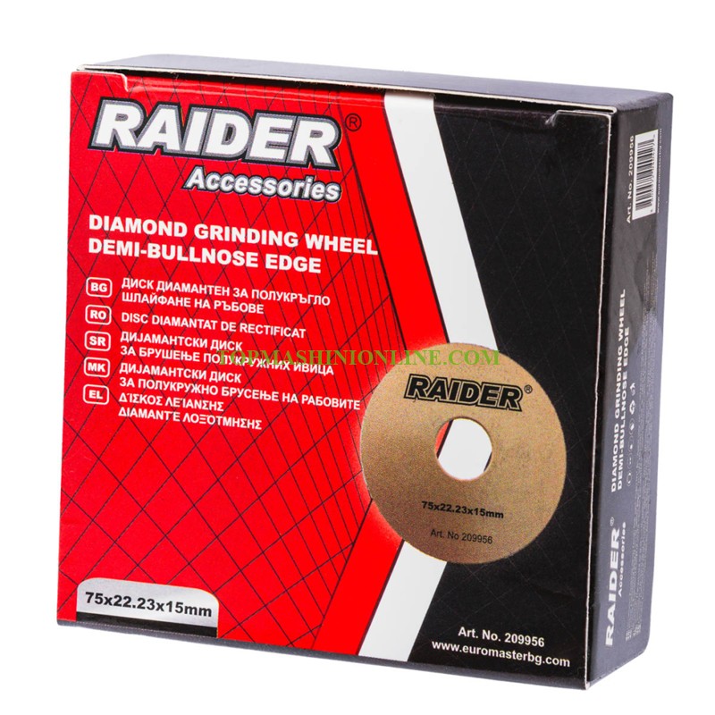Диамантеният диск за шлайфане с дебелина 15 мм Raider 209956 с диаметър 75 мм е предназначен за по-интензивно шлифоване и оформяне на ръбове. Полукръглият (деми-бълноуз) профил осигурява равномерно обработване и гладък преход при оформяне на ръбове. Висококачествените диамантени сегменти гарантират устойчивост на износване и дълъг експлоатационен живот. Идеален е за работа с камък, бетон, керамика и други твърди материали. Съвместим е с ъглошлайфи и ротационни инструменти за професионални и домашни приложения.