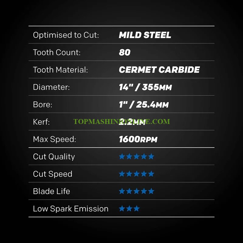 Разполага с 80 керметно-карбидни зъба, които са по-твърди и по-устойчиви на износване от стандартните карбидни върхове, осигурявайки по-чисти, по-прецизни разрези и по-дълъг живот на острието.