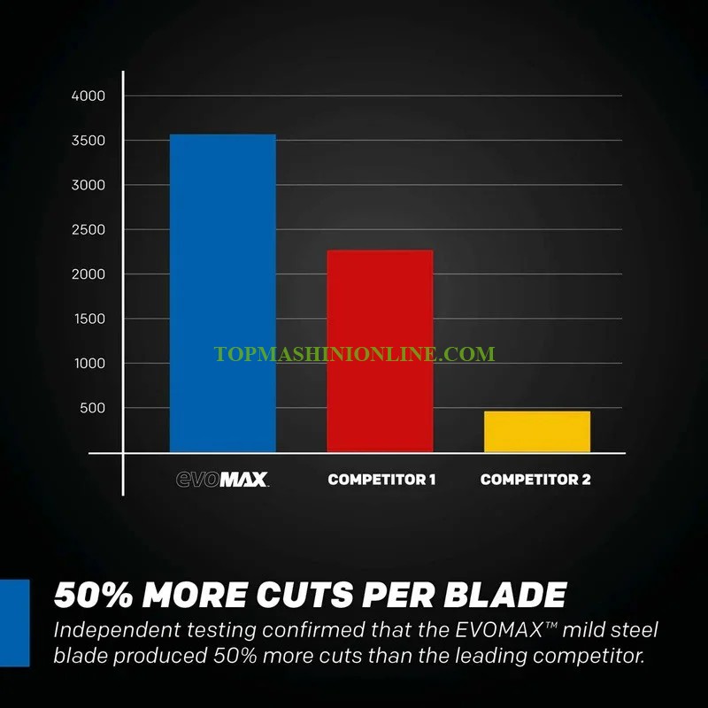 Диск за циркуляр за рязане на мека стомана с диаметър Ø 255х25.4 мм Evolution M355CMT-80CSM произвежда по-чисти, по-хладни и без остатъци, разрези по-качествени от всеки друг диск за рязане на стомана. С до 3500 разреза на нож, EVOMAX осигурява водеща на пазара производителност - издържа до 50% по-дълго от водещите 355-милиметрови конкурентни ножове. По-малкото смени на ножовете означават по-малко време за престой и значително по-ниски разходи за подмяна, което ви помага да свършите повече за по-малко пари. Ръчно изработен в Япония с първокласни керметно-карбидни зъби, които са по-твърди и по-устойчиви на износване от стандартните карбидни върхове, EVOMAX гарантира превъзходно качество на рязане и дълготрайна производителност. Антивибрационните слотове в тялото на острието допълнително повишават точността, като поддържат острието изправено, осигурявайки безупречни резултати от първия до последния разрез - дори в най-взискателните среди. Оптимизиран за изключителна производителност с всички видове металорезни триони, но проектиран да осигури върховно изживяване при рязане, когато е комбиниран с циркуляр EVOMAX S355MCS и циркуляр S355CPS - осигурявайки най-добрите възможни резултати при професионална работа. Следването на най-добрите практики ще ви гарантира, че ще получите най-много разрези и най-чисти резултати от всеки диск. Антивибрационните слотове в тялото на острието поддържат острието правилно, намалявайки отклонението и осигурявайки постоянни, високопрецизни резултати. Осигурява хладни, без остатъци и точни, готови за заваряване разрези директно от процеса на рязане, елиминирайки необходимостта от допълнителна обработка. Реже до 4 пъти по-бързо от абразивните дискове, което ви помага да изпълнявате задачите по-ефективно. Технологията за студено рязане не произвежда топлина, никакви замърсители във въздуха и елиминира риска от счупване на острието, което прави работното ви място по-безопасно. Оптимизиран за всички металорезачни триони, но осигурява върховно изживяване при рязане, когато е комбиниран с циркулярния трион Evolution S355MCS и циркулярния трион S355CPS.