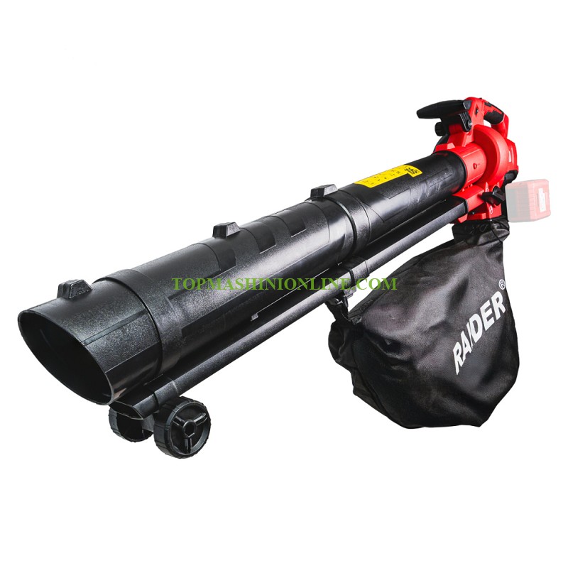 Акумулаторен листосъбирач Raider pro RDP-EBV20 Solo Li-Ion е практично и ефективно решение за почистване на дворове, алеи, градини и други външни пространства. Съчетавайки функции за засмукване и мулчиране, машината предлага висока производителност и удобство при работа, като значително улеснява поддръжката на околната среда. Моделът е в Solo вариант, което означава, че се доставя без батерия и зарядно устройство, като е съвместим с всички батерии от серията R20 (20V). Това позволява гъвкавост и икономия при използване на вече налични батерии. Листосъбирачът работи с номинално напрежение 40V DC (2x20V), което осигурява достатъчно мощност за бързо и ефективно почистване. Благодарение на регулируемите обороти в диапазона 8000–13000 min⁻¹, потребителят може да избере оптималната мощност според конкретната задача – от леки замърсявания до по-тежки условия.