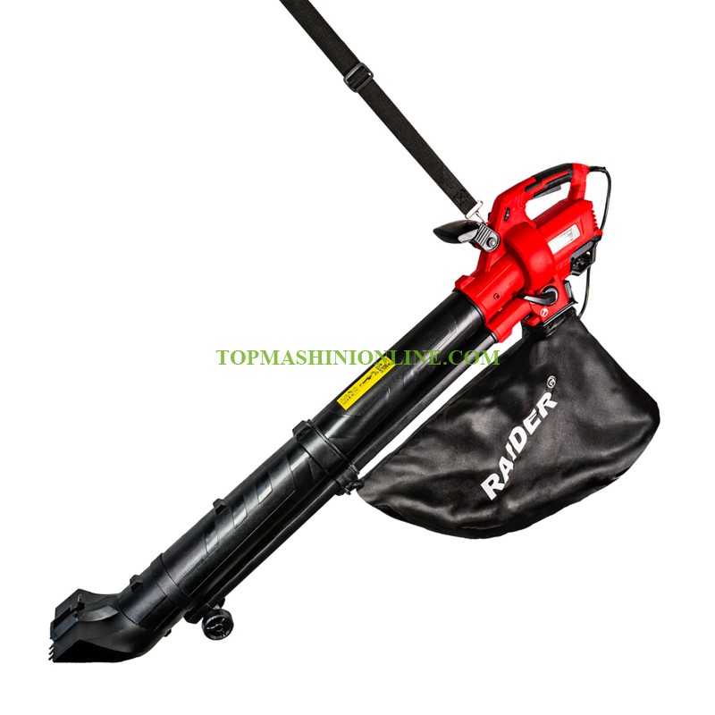 Електрически листосъбирач Raider RD-EBV09 е с мощност 3000 W, регулируеми обороти от 9000 до 15000 мин-¹ което позволява прецизен контрол върху силата на въздушния поток. Листосъбирачът достига максимална скорост на въздуха до 270 km/h, което гарантира бързо и ефективно събиране на листна маса и градински отпадъци. Моделът е оборудван с събирателна торба с капацитет 45 литра, която позволява продължителна работа без често изпразване. Една от ключовите му функции е системата за мулчиране с коефициент 10:1, която раздробява събраните листа и отпадъци, значително намалявайки техния обем. Това улеснява както събирането, така и последващото им използване като компост. Предната част на удължението е оборудвана с гребло, което помага за по-лесно отделяне и събиране на влажни или слепнали листа. Машината е проектирана с мисъл за комфорта на потребителя – нивото на звуково налягане е 84.33 dB, а нивото на вибрации е 3.317 m/s², което осигурява по-стабилна и удобна работа. Със своята функционалност, висока мощност и практичен дизайн, RD-EBV09 е отличен избор за поддръжка на градини и дворове през всички сезони.
