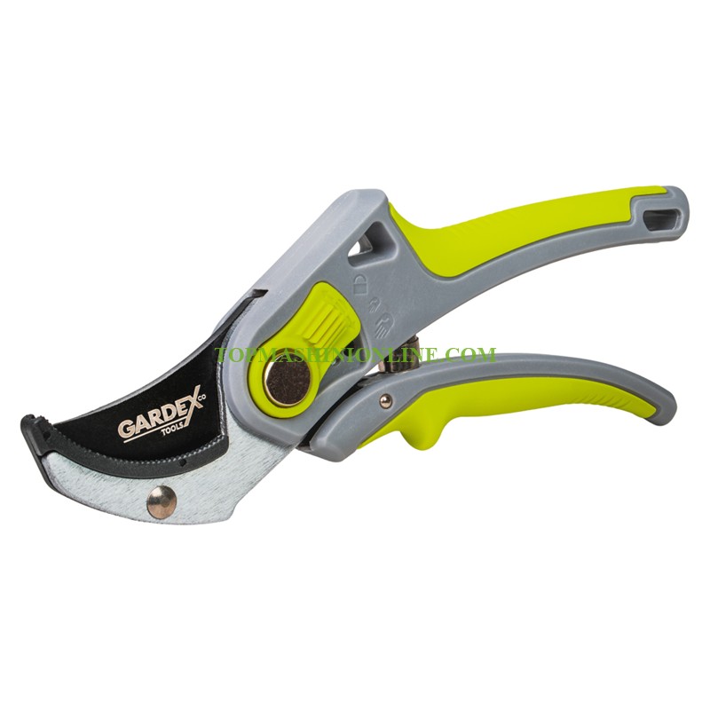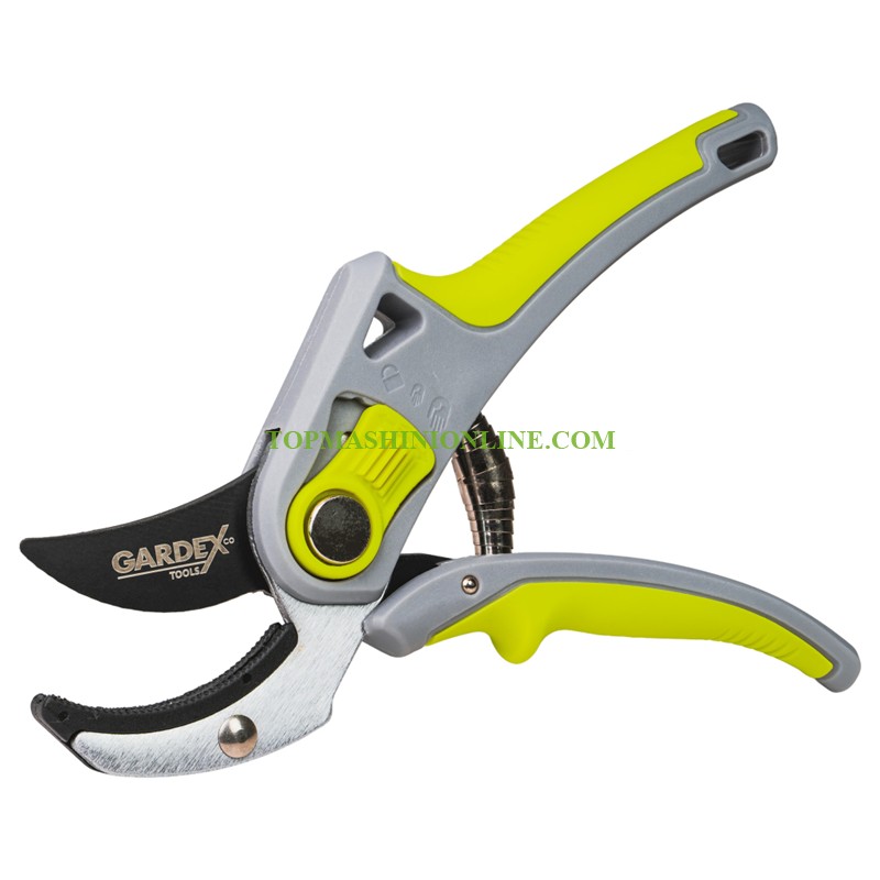 Лозарска ножица с наковалня Gardex VINE 402920 е предназначена за прецизно и комфортно рязане при лозарство, овощарство и обща градинска поддръжка. Моделът е част от серията "VINE", създадена за издръжливост, надеждност и ергономичен комфорт при дълготрайна употреба. Ножицата е от тип „наковалня“ (anvil), подходяща за рязане на твърди, сухи или дървесни клони. Механизмът осигурява чист и контролиран срез с минимални усилия. Режещото острие е изработено от висококачествена стомана SK5, осигуряваща отлична здравина, устойчивост на износване и дълготрайна острота. Teflon покритието намалява триенето при рязане, предотвратява полепването на растителни остатъци и предпазва острието от корозия. Ергономичната TPR дръжка осигурява сигурен и удобен захват, като намалява умората при продължителна работа. Балансираната конструкция подобрява контрола и прецизността при всяко рязане.