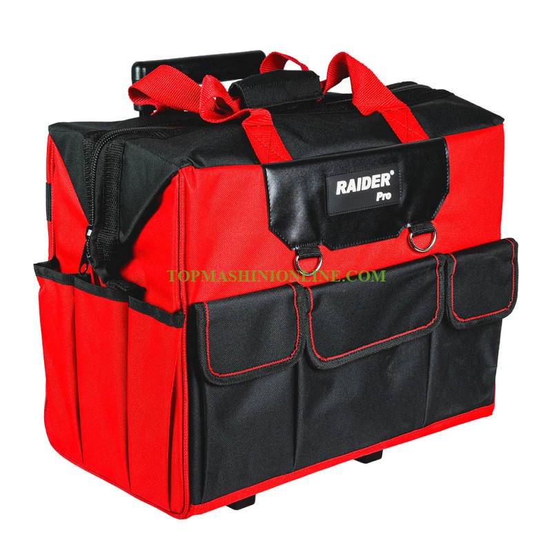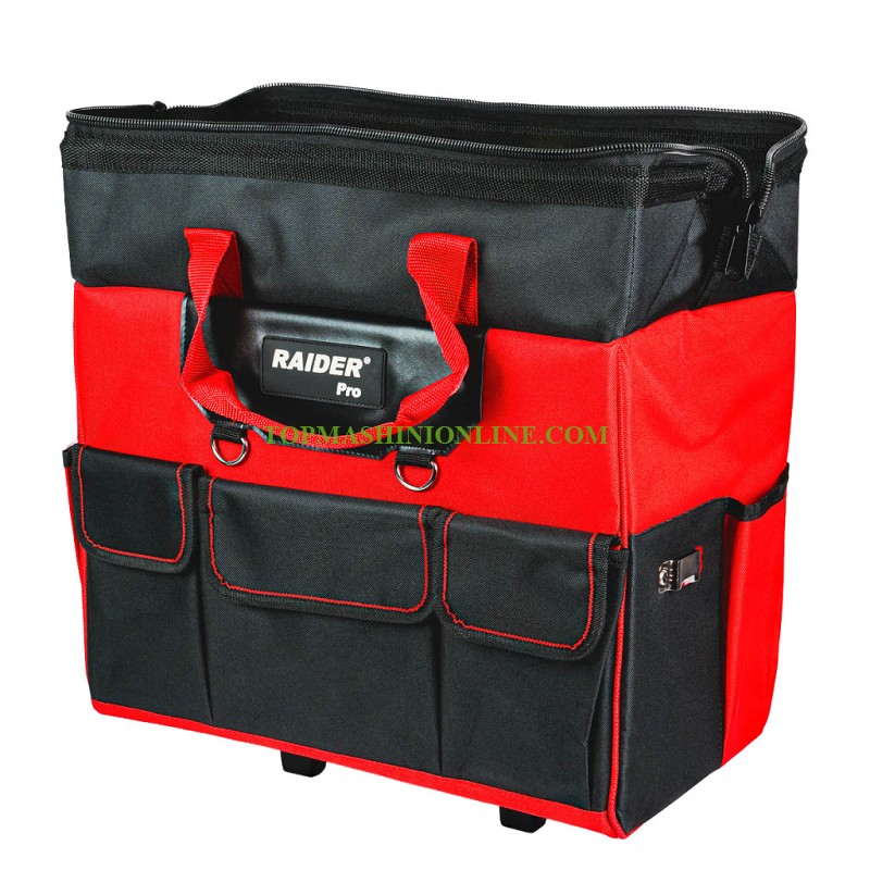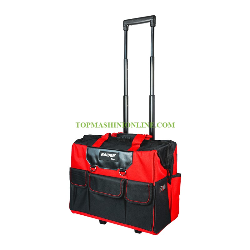 Чанта за инструменти Raider Pro 139617 с телескопична дръжка и колела е създадена за професионалисти, които се нуждаят от удобство, мобилност и добра организация на работното си оборудване. Снабдена е с 19 отделения, тя позволява прецизно подреждане на инструменти и аксесоари, като осигурява бърз и лесен достъп до тях по време на работа. Това значително улеснява организацията и повишава ефективността в динамична работна среда. Изработена е от висококачествен 600D полиестер, който се отличава с висока устойчивост на износване, разкъсване и натоварване. Материалът гарантира дълъг експлоатационен живот дори при ежедневна интензивна употреба в строителството, сервизната или монтажната дейност. Чантата е проектирана да издържа натоварване до 20 кг, което я прави подходяща за пренасяне на по-тежки инструменти и оборудване без компромис в стабилността. За максимално удобство при транспортиране е оборудвана с телескопична дръжка и здрави колела, които позволяват лесно придвижване дори при пълно натоварване. Това я прави изключително практична при работа на различни обекти.Благодарение на своя функционален и компактен дизайн, чантата е отличен избор за професионални техници, монтажници и сервизни специалисти, които ценят организацията и мобилността.