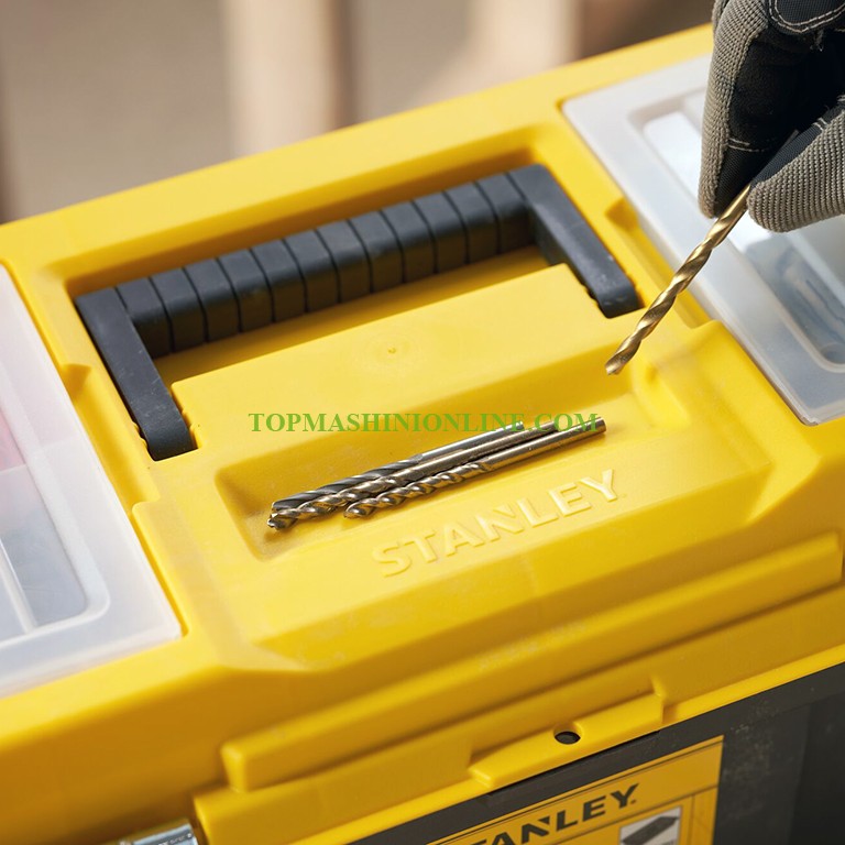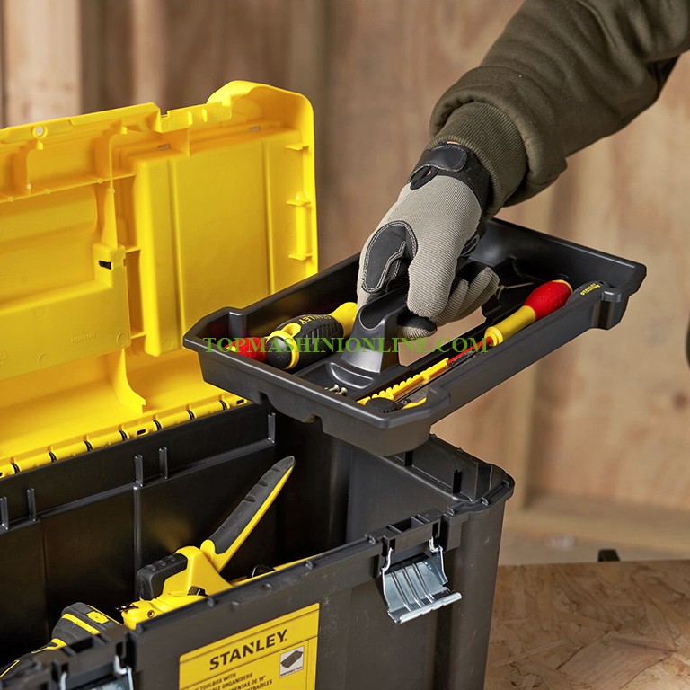 Пластмасов куфар за инструменти Stanley STST75787-1 с размери 490x285x255 мм и максимална товароносимост 8 кг е предназначен за съхранение на ръчни и по-малки електрически инструменти. Разполага с подвижна тава за съхранение на малки части, както и горно отделение за съхранение на малки винтове и шайби. Двата подвижни органайзера осигуряват бърз и лесен достъп до крепежни елементи и аксесоари. Двете метални закопчалки са устойчиви на ръжда. За по-голяма сигурност е предвидена възможност за заключване на куфара с катинар.