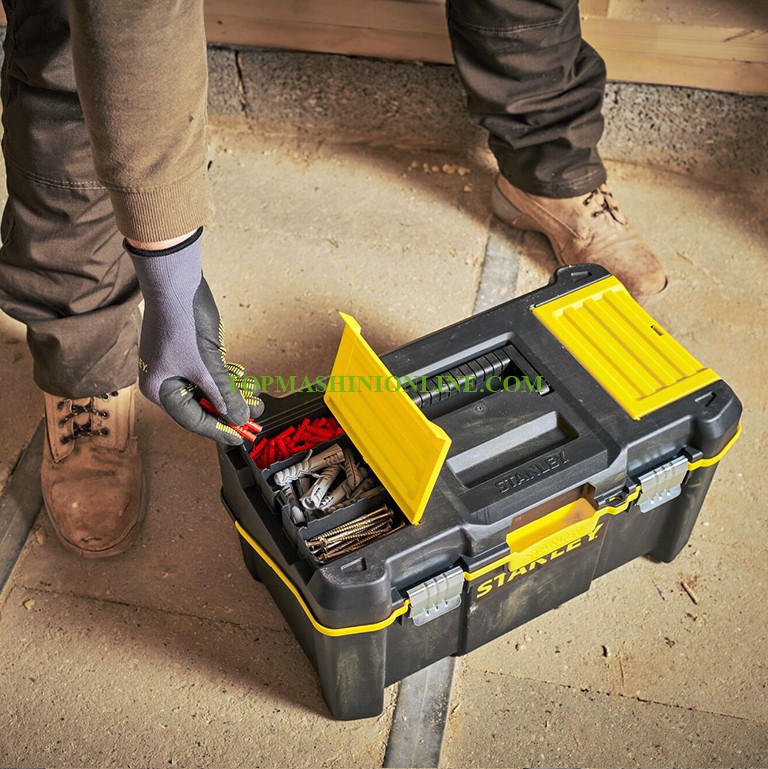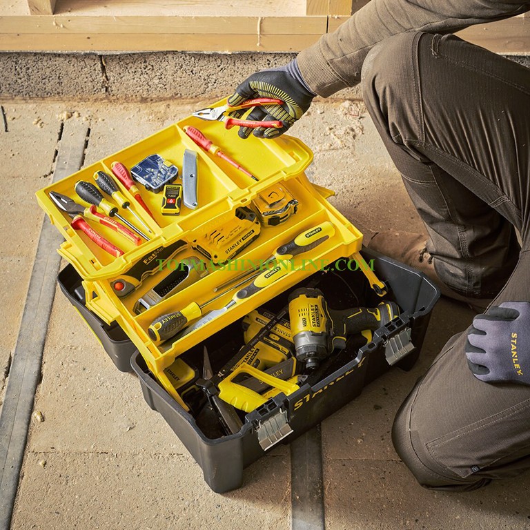 Пластмасов куфар за инструменти Stanley STST83397-1 с размери 490x285x255 мм и максимална товароносимост 22 кг е с 3 нива за съхранение за бърз достъп до вашите инструменти и аксесоари. Куфара има 2 вътрешни тави, предназначени за лесно организиране на по-малки ръчни инструменти, както и 2 отделения за органайзер на капака, идеални за съхранение на малки крепежни елементи и аксесоари. Оборудван е дръжка за лесно затваряне, метални закопчалки за издръжливост и текстурирана дръжка за носене за комфорт и лесно транспортиране.