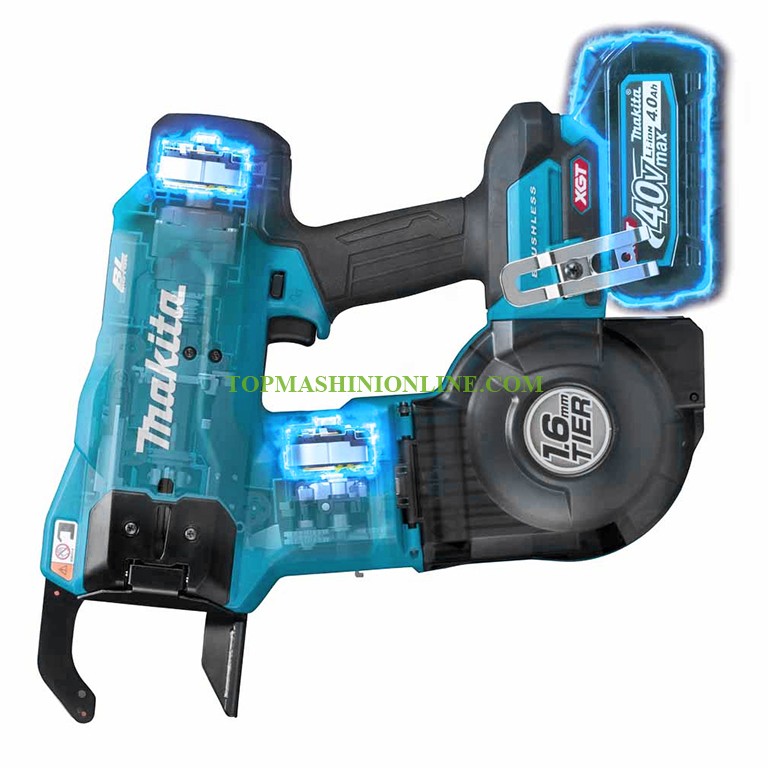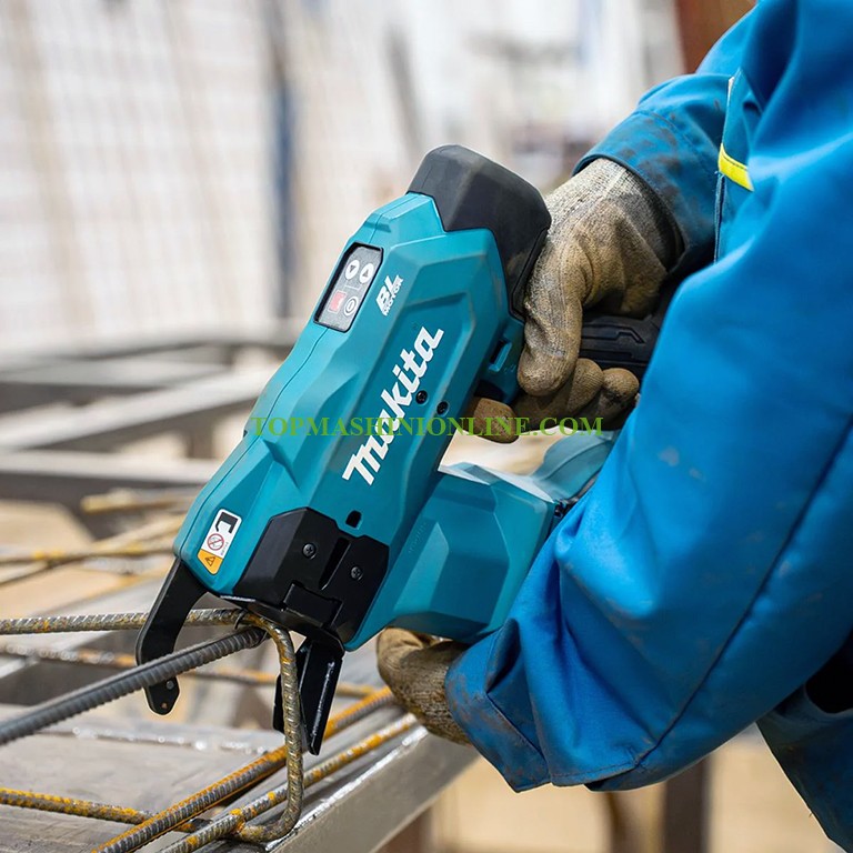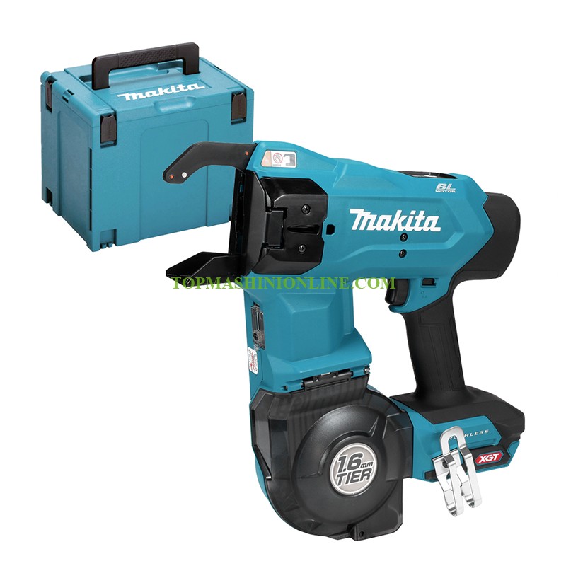 Акумулаторна машина за връзване на арматура Makita TR001GZ 40 V max XGT е подходяща за бързо, чисто и икономично връзване на арматурно желязо в бетонни конструкции, подови системи и граждански проекти. Разполага с два безчеткови мотора - един за подаването на телта, и втори - за връзването. Захранва се от 40 V max XGT батерия от серията XGT и има капацитет на връзване при комбиниране на 2 арматурни железа от 2х10 до 2х25 мм, или 22x32 мм, при 3 арматурни железа - 3x19 мм или 25 мм, а при 4 арматурни железа - 4x16 мм. Със стоманена тел с диаметър 1,6 мм машината създава стегнати и надеждни възли благодарение на механизма за прибиране на телта, намалявайки разхода й и вероятността от разхлабване на връзките. Силата на връзване може да се регулира в 6 степени, а разходите на тел са около 130-150 мм на връзка. Специална защита спира машината автоматично на последните 20 см тел, за да предотврати непълни връзки. Изгледът от предния прозорец позволява наблюдаване на поставянето на телта. Отличава се и с добре контролирано ниво на звукова мощност около 88 dB(A), звуково налягане около 80 dB(A) и вибрации до 2,5 м/сек2 в режим на връзване. Доставя се без батерия и зарядно устройство, в куфар Makpac 4.