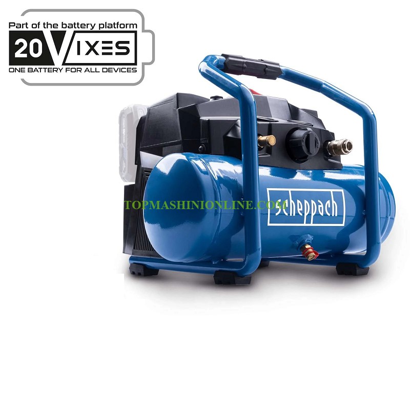 Акумулаторен компресор 6 литра Scheppach C-ACT160/6-X 20 V е мощен помощник за работа в къщата, работилницата или гаража. Благодарение на мощната си батерийна технология и компактния си дизайн, компресорът е идеален за мобилна употреба. С максимално работно налягане от 8 бара, 6-литров резервоар за сгъстен въздух и капацитет на засмукване от 130 литра в минута, C-ACT160/6-X е идеален за домашна употреба. Като част от 20-волтовата серия Scheppach IXES, всички батерии и зарядни устройства от системната гама могат да се използват с компресора. Батериите и зарядните устройства се продават отделно. C-ACT160/6-X се предлага с комплект от 11 аксесоара. Доставя се без батерии и зарядно устройство!