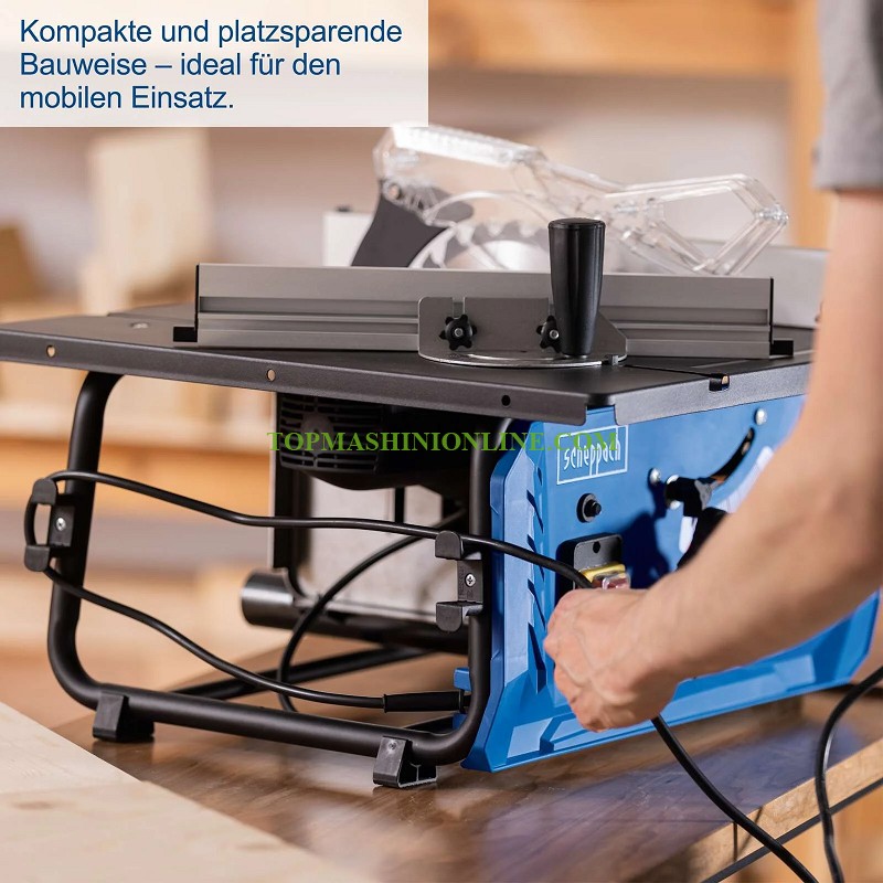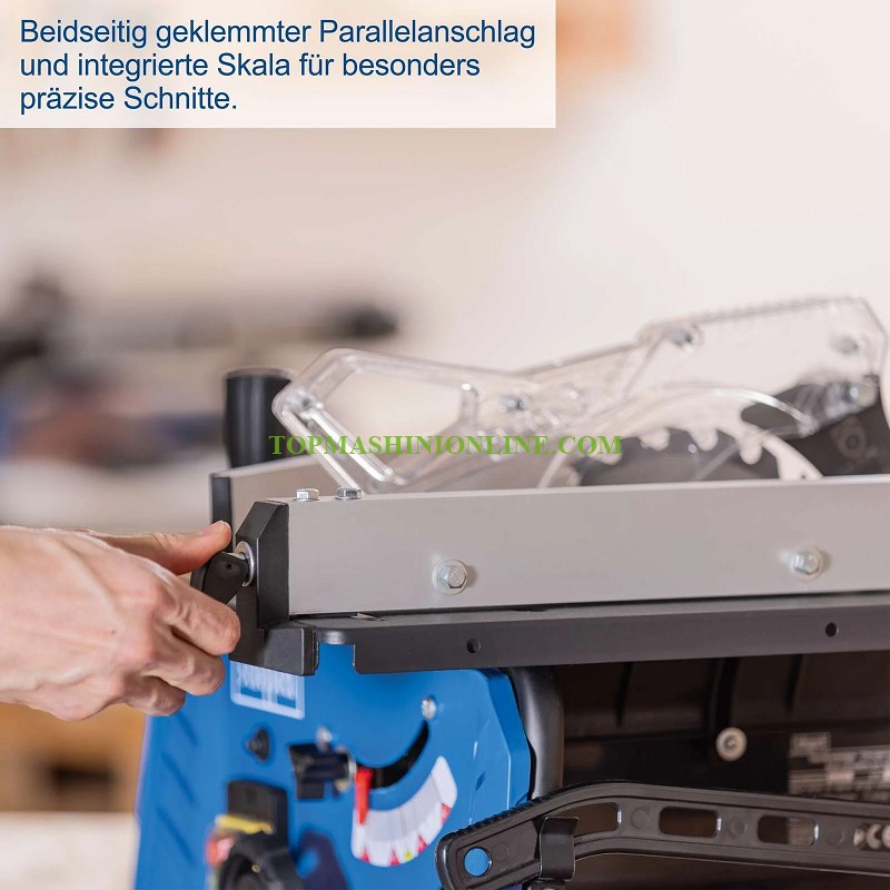 Стационарен циркуляр Scheppach HS210 с мощност 1500 W, диск с външен диаметър 210 мм, максимална височина на рязане до 70 мм, размери на масата 500 x 445 мм е идеален за прецизно рязане на греди, профилирани дъски, както и за надлъжно и ъглово рязане. За точни наклонени разрези, циркулярният диск може да се накланя безстепенно от 0 до 45°. HS210 се предлага с напречен упор, надлъжно рязане и лост за избутване. Има безстепенно регулируем нож от 0 до 45° за прецизни рязане под ъгъл. Осигурява височина на рязане при 90° максимум 70 мм / 45° максимум 54 мм. Оборудван е с ръчно колело за удобно регулиране на височината на рязане, интегрирана връзка за изсмукване, регулируем водач за напречно рязане от -60° до +60° – идеален за рязане под ъгъл, двустранно затегнат надлъжен ограничител и вградена скала за прецизни разрези. Максимална безопасност на работното място чрез защита на острието на триона. Циркуляра се предлага с напречен упор, надлъжно рязане и лост за избутване.