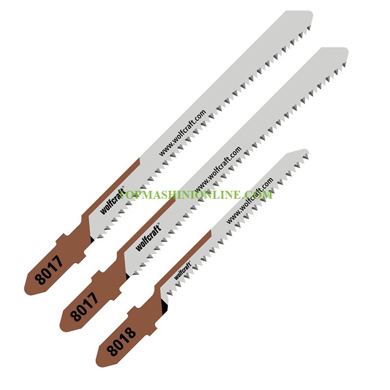 Опаковка от 3 ножчета за прободен трион зеге с Т-образен захват Wolfcraft 2391000 са произведени от високовъглеродна стомана HCS и специализирани за изработването на мебели, за извършването на фини праволинейни и криволинейни разрези в дърво с покритие, твърдо дърво и MDF с дебелина до 20 мм. Включва 2 ножа за праволинейно и 1 за криволинейно рязане.