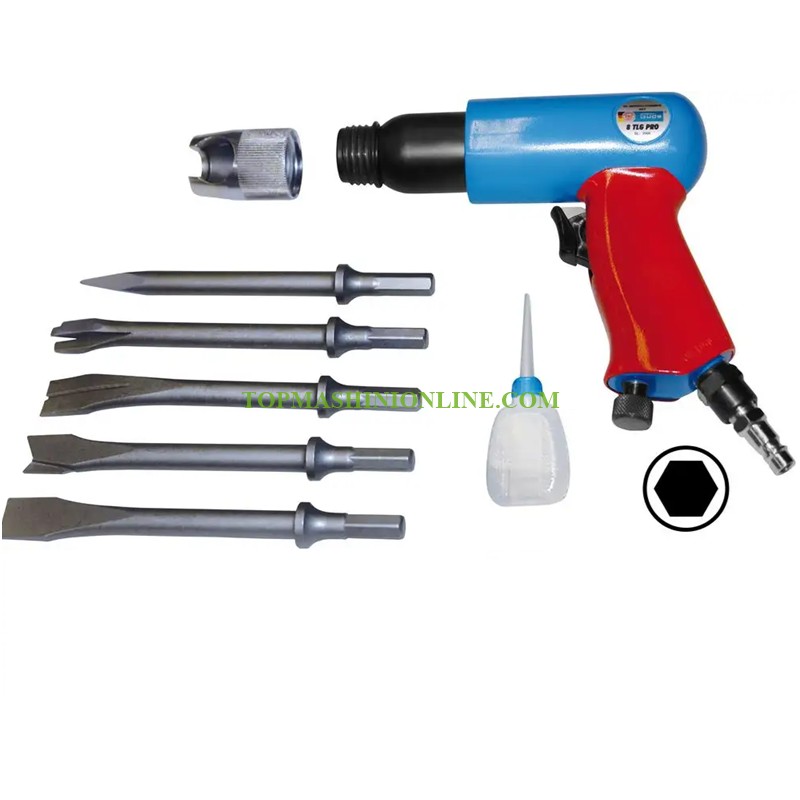 Пневматичен къртач с работно налягане 6.3 bar и консумация на въздух 150-240 л/мин Gude 75180 с бързосменяем патронник е мощен инструмент, специално проектиран за взискателни задачи като премахване на плочки, външна мазилка или метални профили. Оборудван с 6-странна опашка, той предлага висока стабилност и прецизност, от решаващо значение за мощни работи по длето. Бързосменяемият патронник позволява бърза и лесна смяна на длетото, което значително повишава ефективността на работа. Друга характеристика, която осигурява комфорт и контрол по време на употреба, е гумираната мека ръкохватка. Тази ръкохватка намалява умората и осигурява сигурно захващане, дори при интензивна употреба. Като цяло, този комплект длето-чук Güde е идеален за професионалисти и взискателни „Направи си сам“ ентусиасти, които се нуждаят от здрав и ефикасен инструмент за разрушаване и ремонтни дейности. Доставя се с бързо освобождаваща се втулка, 5 длета масльонка в пластмасов куфар.