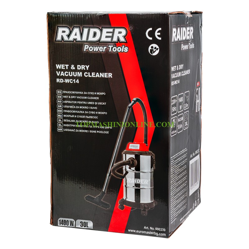 Прахосмукачка за мокро и сухо почистване Raider RD-WC14 е високоефективен и универсален уред, създаден да отговори на изискванията както на взискателните домашни потребители, така и на професионалисти, работещи в сервизи, работилници, производствени помещения, складове, гаражи и на строителни обекти. Благодарение на мощния си 1400 W електродвигател, тя осигурява стабилна и надеждна всмукателна сила, която позволява бързо и качествено почистване на сухи замърсявания като прах, дървени стърготини, метални частици и строителни отпадъци, както и на течности, разливи и др.