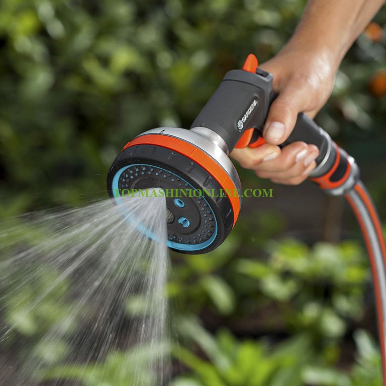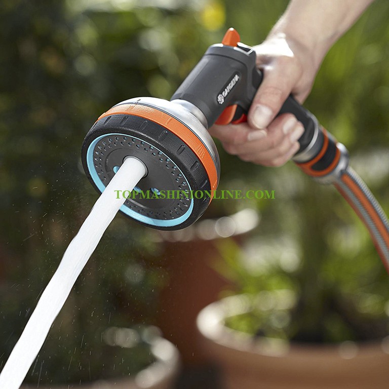 Универсален градински пистолет за поливане Premium Gardena 18317-20 е изработен от плътен метал и пластмаса, със здрава разпръскваща глава и четири различни вида на струята е предназначен за различни дейности при поливане и миене. Подходящ е за поливане на цветни лехи, саксийни растения и деликатни растения, както и за мощно почистване и премахване на замърсявания. Имате избор между мека, аерирана, плътна и плоска струя. Освен вида на струята, дебитът на водата също може да се регулира отделно и плавно. Видът струя и дебитът могат да бъдат подбрани точно за конкретното приложение. Благодарение на оптимизираното разпределение на теглото и елементите от мека пластмаса универсалният метален пистолетен разпръсквач Gardena Premium лежи добре в ръката. Разпръсквачът може лесно да се пуска с помощта на спусъка. За по-дълга употреба той може да бъде застопорен за удобно поливане, без да се налага постоянно да се натиска бутон. За по-голямо разнообразие при поливането.