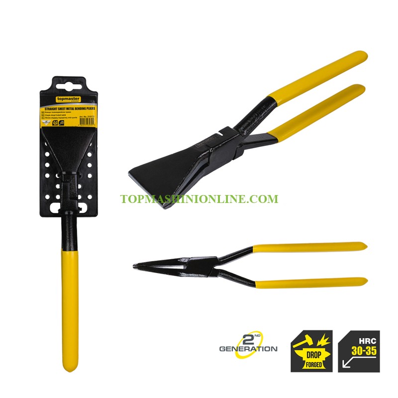Прави тенекеджийскиклещи клещи Top Master Pro 210172 са предназначени за прецизна работа при обработка и формоване на ламарина. Правите челюсти осигуряват отличен контрол и равномерен захват, което ги прави подходящи за широк спектър от тенекеджийски, монтажни и сервизни дейности. Клещите са изработени от висококачествена кована стомана, гарантираща висока здравина и устойчивост при натоварване. Закаляването до 30–35 HRC осигурява оптимален баланс между здравина и еластичност, необходим за прецизно захващане и огъване на ламаринени детайли без риск от напукване или деформация.