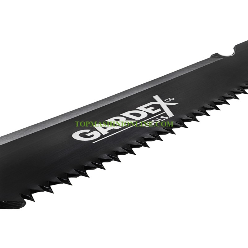 Мачете Gardex 381801 SURVIVOR с дължина 520 мм е многофункционален инструмент, предназначен за оцеляване на открито, къмпинг и др. Специалният профил на острието комбинира класическо мачете, трион и кука в едно, осигурявайки максимална ефективност и универсалност при работа на открито. Острието е изработено от висококачествена неръждаема стомана, която осигурява отлична издръжливост, устойчивост на корозия и дълготрайна острота дори при интензивна употреба. Дългият прав режещ ръб е подходящ за сечене, разчистване на храсти, трева и тънки клони, като изнесеният напред баланс позволява по-силен и ефективен удар с по-малко усилие. На гърба на острието е разположен трион, предназначен за рязане на сухи клони и дърво, което прави инструмента изключително полезен при къмпинг и ситуации, в които няма достъп до отделен трион. Извитата кука в предната част на острието улеснява закачането, издърпването и контролираната сеч на клони, както и работата в гъста растителност, лозя и храсти. Отворът в острието допринася за по-добър баланс, намаляване на теглото и позволява удобно окачване или закрепване. Ергономичната TPR дръжка осигурява стабилен и сигурен захват, дори при влажни условия, като предпазната гарда предотвратява приплъзване на ръката към острието по време на работа. Благодарение на своя многофункционален профил, мачетето SURVIVOR GX е отличен избор за любители на природата, къмпингари, ловци и градинари, които търсят надежден инструмент за различни outdoor и работни приложения.