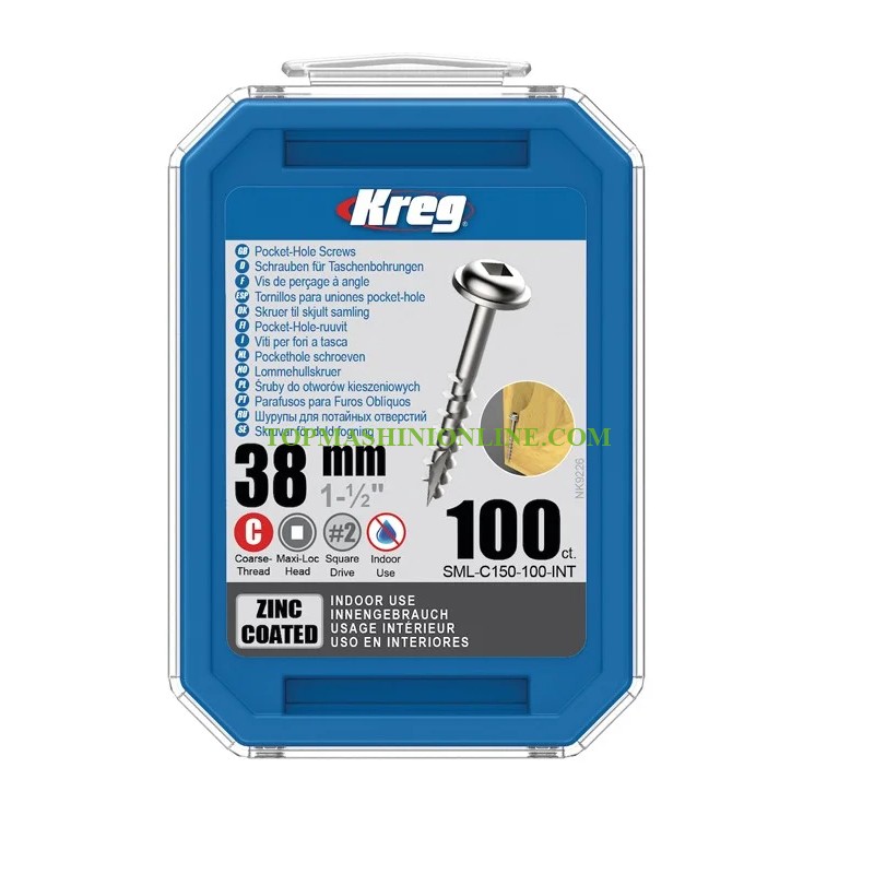 Поцинковани самонарезни винтове за дърво със самонарезна глава с дължина 38 мм Kreg SML-C150-100 100 броя са добър избор за различни интериорни проекти с ограничено излагане на атмосферни влияния. Съвместими са с всички шаблони за пробиване Kreg Jig®. Имат голяма глава с фланец за сигурно задържане. Подходящи са за мека дървесина, OSB, ПДЧ и MDF.