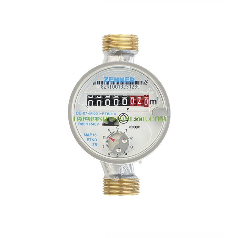 Водомер за студена вода с ролков брояч без холендри ETKD-N ZENNER за дебити до 4 м³/ч. има много ниска стойност на задвижване и може да се монтира хоризонтално и вертикално. Компактната форма на сухия броячен механизъм улеснява неговото монтиране и в трудни условия за монтаж. Неговият 8-ролков брояч гарантира отчитане на точни данни. За температури до 30°С предлагаме използването на ETK-M. Алтернативно за температура до 90°С се доставя варианта за топла вода - ETW-M.