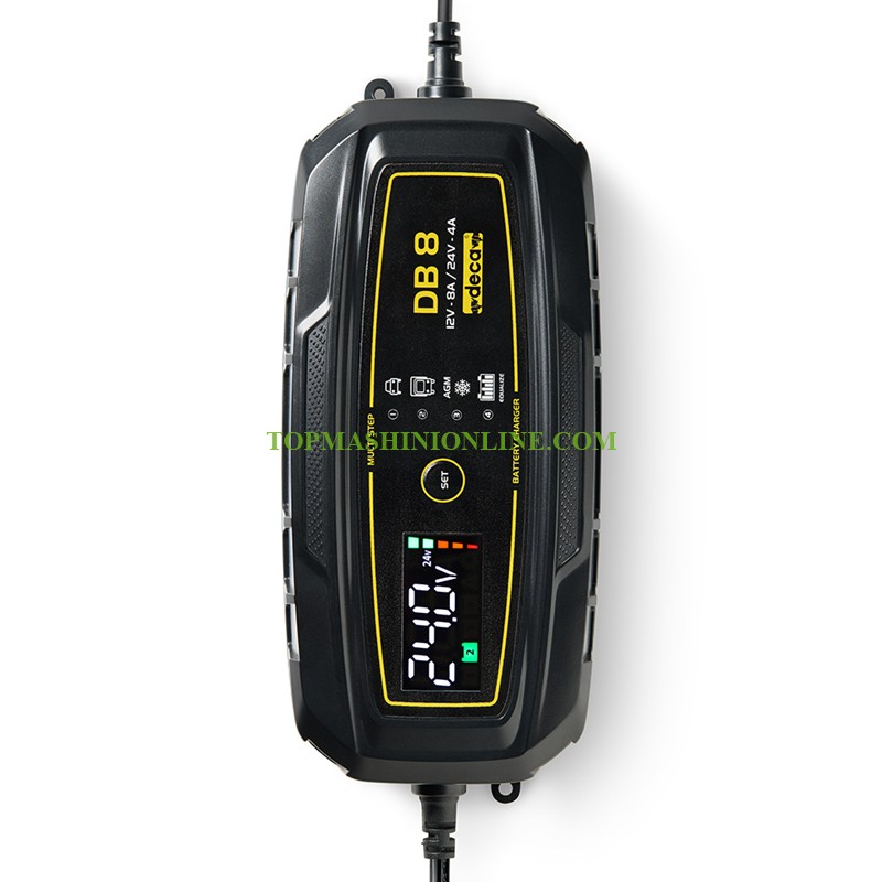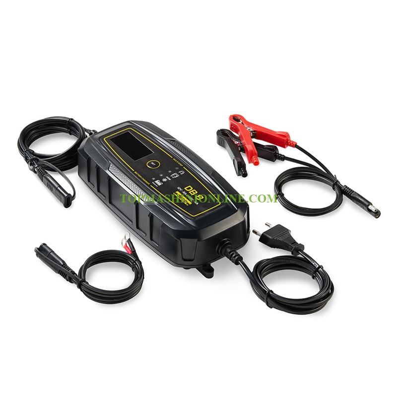 Зарядното и поддържащо устройство за батерии Deca DB 8 е подхоящо за 12 и 24 волтови батерии с капацитет от 8 до 180Ah от типовете WET, EFB, MF, Ca/Ca, AGM, GEL, Start & Stop. То е интуитивно и лесно за употреба, благодарение на практичния дисплей, който показва състоянието на зареждане на батерията и избраната програма за зареждане. Това зарядно устройство е отлично решение е за зареждане и поддръжка на мотоциклети, SUV-ове, търговски превозни средства, селскостопански машини, лодки, камиони и индустриални превозни средства. Практичен дисплей показва състоянието на зареждане на батерията и избраната програма за зареждане. Зареждането се извършва в 7 стъпки за оптимален цикъл, удължаващ живота на батерията. Импулсната поддръжка предотвратява дълбокото разреждане и поддържа батерията винаги заредена. След прекъсване на захранването, зареждането автоматично се възобновява. Зарядното устройство е защитено от обратна полярност, късо съединение и прегряване. Разполага със специален режим за зимно зареждане на AGM батерии (с по-високо напрежение) и всички батерии, работещи при температури под 5 °C. Ребалансира концентрацията на киселина между клетките на батерията, балансирайки заряда и удължавайки експлоатационния й живот.