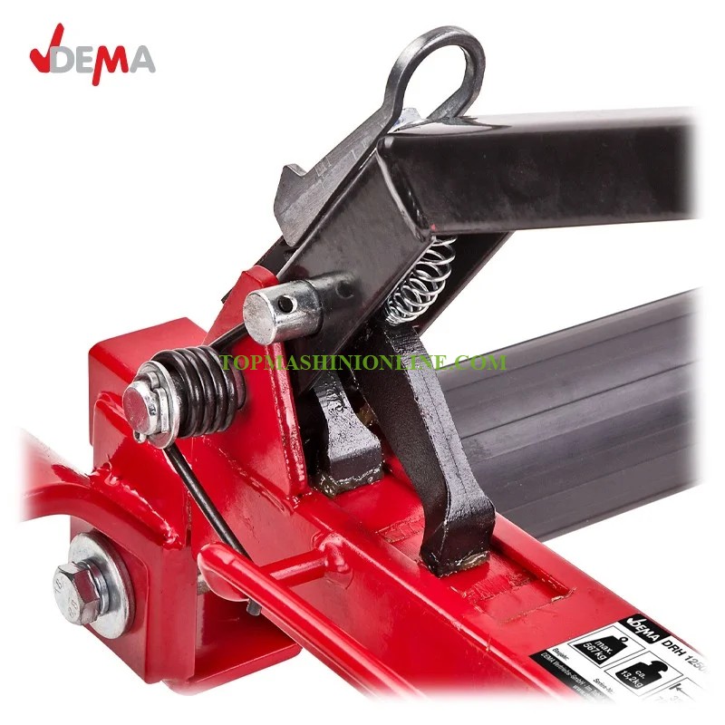 Количка за преместване и позициониране на коли Dema DRH 9 е оборудвана с лесен за поддръжка люлеещ се механизъм без хидравличен цилиндър, което намалява риска от изтичане на масло. Педалът е постоянно монтиран и позволява повдигането и спускането на маневреното устройство само чрез завъртане на лоста за превключване. Количката има четири здрави въртящи се колела със сачмени лагери и PVC защитни ролки, които позволяват повдигане, маневриране и спускане, щадящи гумите. Предлагат се и удобна дръжка за носене и педал с кука за задържане за пестене на място. Доставя се напълно сглобена, с изключение на двете напречни греди, които трябва да се монтират с 8 винта.
